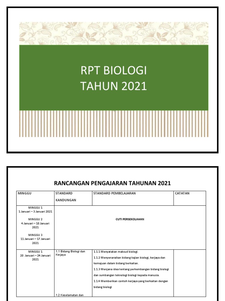 RPT Biologi Tingkatan 4 2021 KSSM. Selari dengan perkembangan pesat teknologi digital Kementerian Pendidikan Malaysia akan menggunakan teknologi dan kandungan digital dalam dalam bidang pendidikan. Bagi guru sekolah menengah juga antara bahan yang amat diperlukan di awal tahun adalah rancangan pengajaran tahunan ataupun rpt.