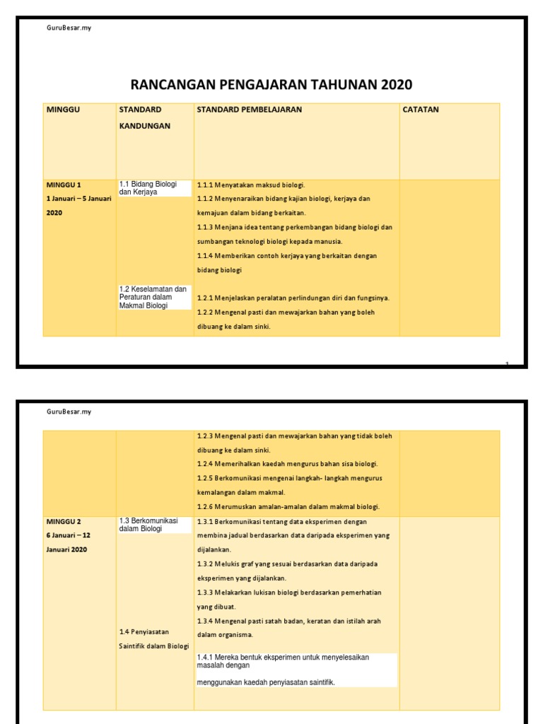 Rpt Rancangan Pengajaran Tahunan Tingkatan 5 Subjek Biologi